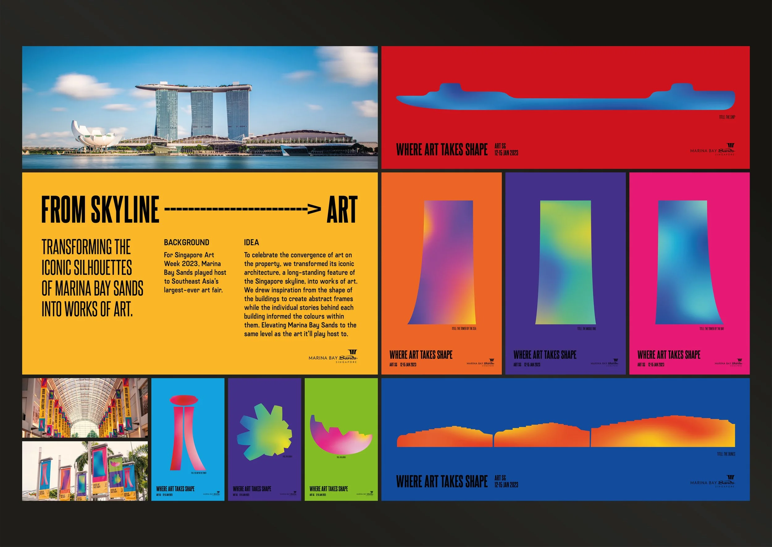 To celebrate the convergence of art on the property, we transformed its iconic architecture, a long-standing feature of the Singapore skyline, into works of art.